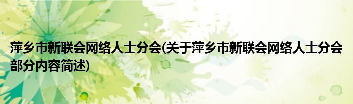 萍乡市新联会网络人士分会(关于萍乡市新联会网络人士分会部分内容简述)