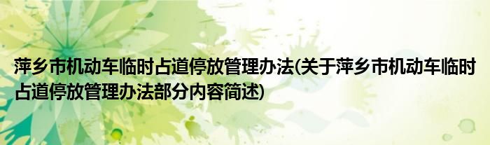 萍乡市机动车临时占道停放管理办法(关于萍乡市机动车临时占道停放管理办法部分内容简述)