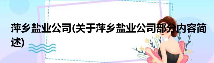 萍乡盐业公司(关于萍乡盐业公司部分内容简述)