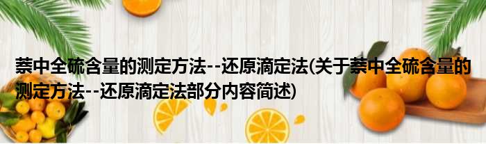 萘中全硫含量的测定方法--还原滴定法(关于萘中全硫含量的测定方法--还原滴定法部分内容简述)
