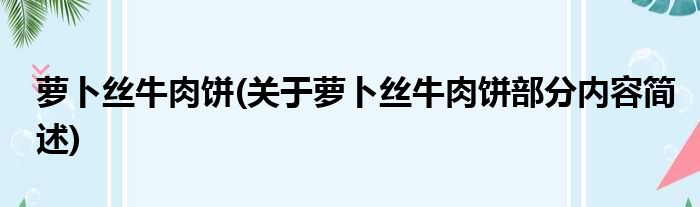 萝卜丝牛肉饼(关于萝卜丝牛肉饼部分内容简述)