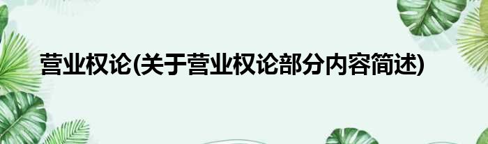 营业权论(关于营业权论部分内容简述)