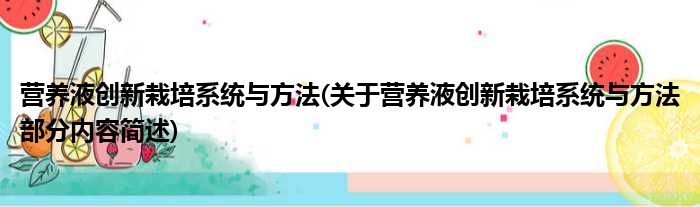 营养液创新栽培系统与方法(关于营养液创新栽培系统与方法部分内容简述)