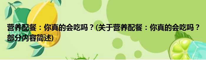 营养配餐:你真的会吃吗?(关于营养配餐:你真的会吃吗?部分内容简述)