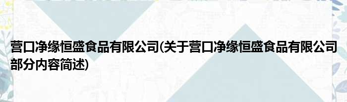 营口净缘恒盛食品有限公司(关于营口净缘恒盛食品有限公司部分内容简述)