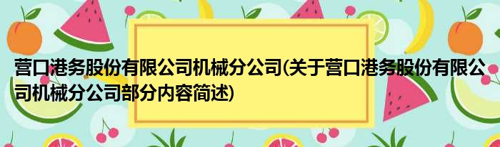 营口港务股份有限公司机械分公司(关于营口港务股份有限公司机械分公司部分内容简述)