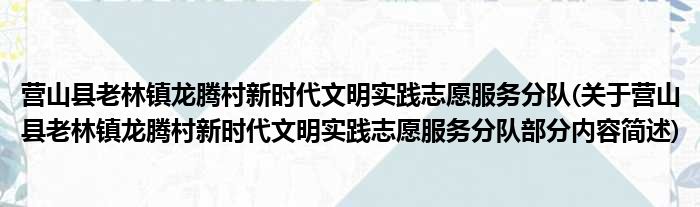 营山县老林镇龙腾村新时代文明实践志愿服务分队(关于营山县老林镇龙腾村新时代文明实践志愿服务分队部分内容简述)