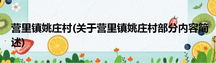 营里镇姚庄村(关于营里镇姚庄村部分内容简述)