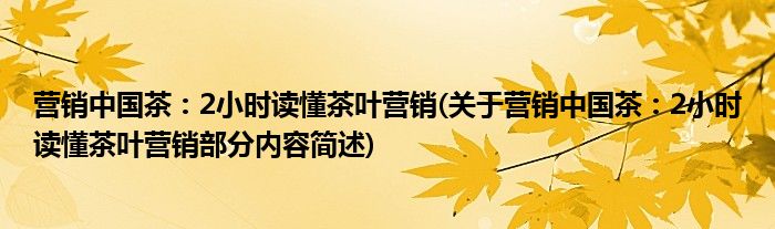 营销中国茶:2小时读懂茶叶营销(关于营销中国茶:2小时读懂茶叶营销部分内容简述)