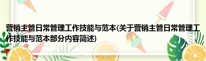 营销主管日常管理工作技能与范本(关于营销主管日常管理工作技能与范本部分内容简述)