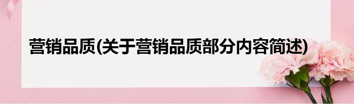 营销品质(关于营销品质部分内容简述)