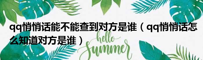 qq悄悄话能不能查到对方是谁(qq悄悄话怎么知道对方是谁)
