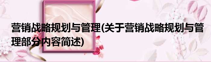 营销战略规划与管理(关于营销战略规划与管理部分内容简述)