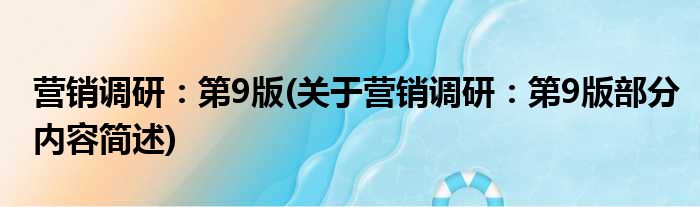 导读 大家好,今天小方来说说一篇关于营销调研:第9版,关于营销调研:第9版部分内容简述的文章,那么现在就为大家来简单介绍下,希望对各位小伙