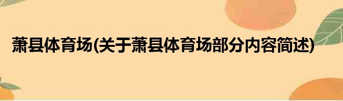 导读 大家好,今天小方来说说一篇关于萧县体育场,关于萧县体育场部分内容简述的文章,那么现在就为大家来简单介绍下,希望对各位小伙伴们有所帮