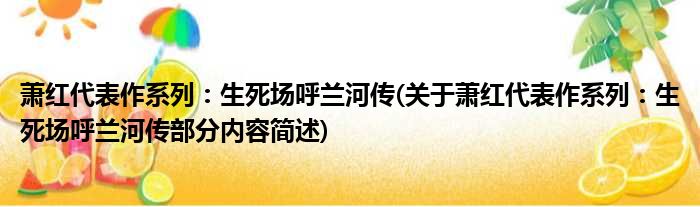 导读 大家好,今天小方来说说一篇关于萧红代表作系列:生死场呼兰河传,关于萧红代表作系列:生死场呼兰河传部分内容简述的文章,那么现在就为大