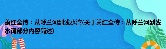 导读 大家好,今天小方来说说一篇关于萧红全传:从呼兰河到浅水湾,关于萧红全传:从呼兰河到浅水湾部分内容简述的文章,那么现在就为大家来简单
