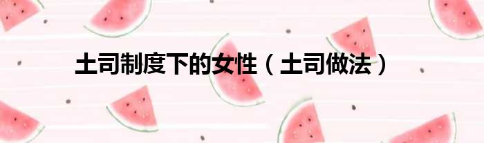 大家好,小爱来为大家解答以上问题。土司制度下的女性,土司做法很多人还不知道,现在让我们一起来看看吧!