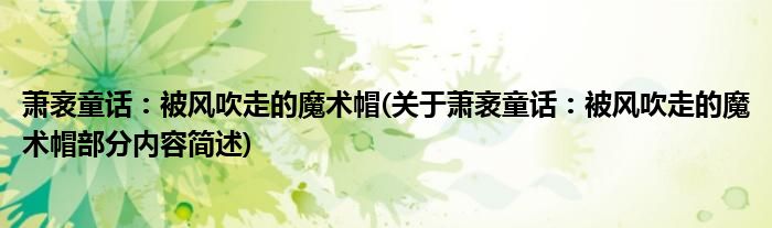 导读 大家好,今天小方来说说一篇关于萧袤童话:被风吹走的魔术帽,关于萧袤童话:被风吹走的魔术帽部分内容简述的文章,那么现在就为大家来简单
