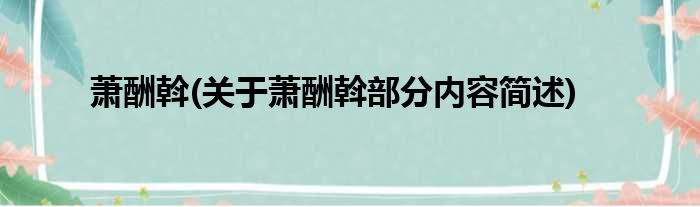 导读 大家好,今天小方来说说一篇关于萧酬斡,关于萧酬斡部分内容简述的文章,那么现在就为大家来简单介绍下,希望对各位小伙伴们有所帮助。