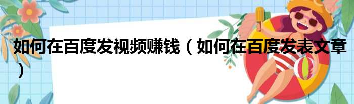 大家好,小爱来为大家解答以上问题。如何在百度发视频赚钱,如何在百度发表文章很多人还不知道,现在让我们一起来看看吧!