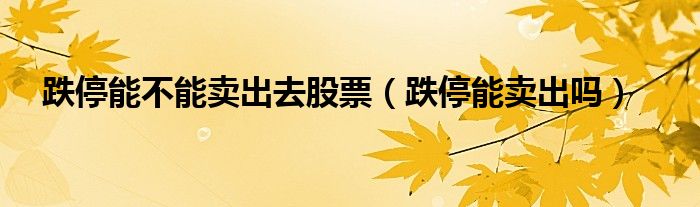 导读 大家好,小爱来为大家解答以上问题。跌停能不能卖出去股票,跌停能卖出吗很多人还不知道,现在让我们一起来看看吧!1、股票跌破跌停可以卖