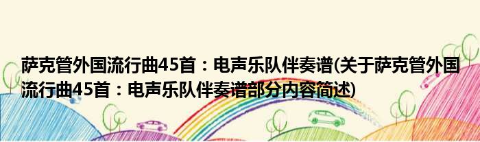 导读 大家好,今天小方来说说一篇关于萨克管外国流行曲45首:电声乐队伴奏谱,关于萨克管外国流行曲45首:电声乐队伴奏谱部分内容简述的文章,那