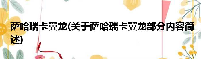 萨哈瑞卡翼龙(关于萨哈瑞卡翼龙部分内容简述)