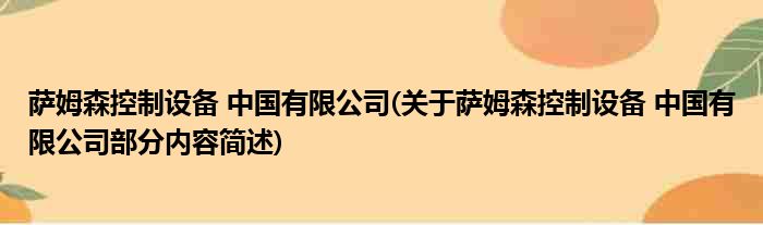 萨姆森控制设备 中国有限公司(关于萨姆森控制设备 中国有限公司部分内容简述)