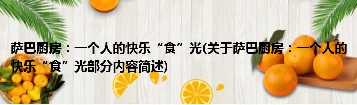 导读 大家好,今天小方来说说一篇关于萨巴厨房:一个人的快乐“食”光,关于萨巴厨房:一个人的快乐“食”光部分内容简述的文章,那么现在就为大