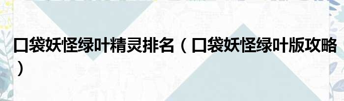 大家好,小爱来为大家解答以上问题。口袋妖怪绿叶精灵排名,口袋妖怪绿叶版攻略很多人还不知道,现在让我们一起来看看吧!