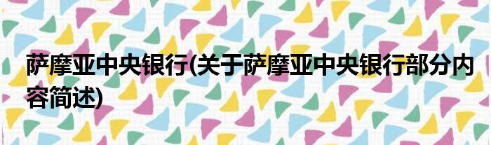 导读 大家好,今天小方来说说一篇关于萨摩亚中央银行,关于萨摩亚中央银行部分内容简述的文章,那么现在就为大家来简单介绍下,希望对各位小伙伴