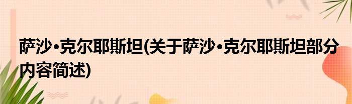 萨沙·克尔耶斯坦(关于萨沙·克尔耶斯坦部分内容简述)