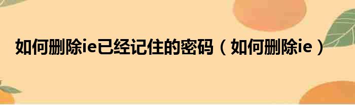 大家好,小爱来为大家解答以上问题。如何删除ie已经记住的密码,如何删除ie很多人还不知道,现在让我们一起来看看吧!