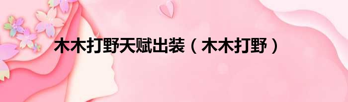 木木打野天赋出装(木木打野)