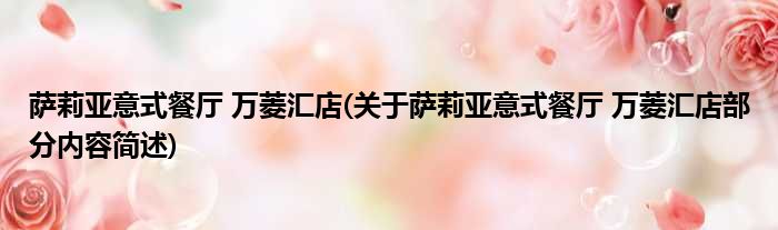 萨莉亚意式餐厅 万菱汇店(关于萨莉亚意式餐厅 万菱汇店部分内容简述)