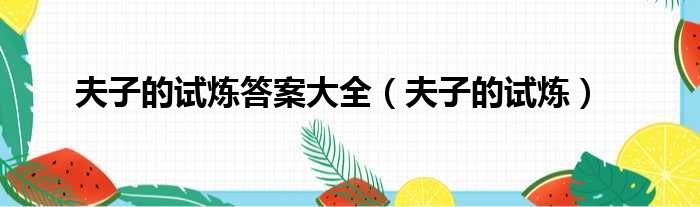 大家好,小爱来为大家解答以上问题。夫子的试炼答案大全,夫子的试炼很多人还不知道,现在让我们一起来看看吧!