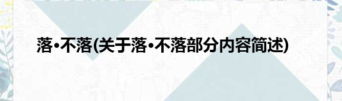 导读 大家好,今天小方来说说一篇关于落·不落,关于落·不落部分内容简述的文章,那么现在就为大家来简单介绍下,希望对各位小伙伴们有所帮助。