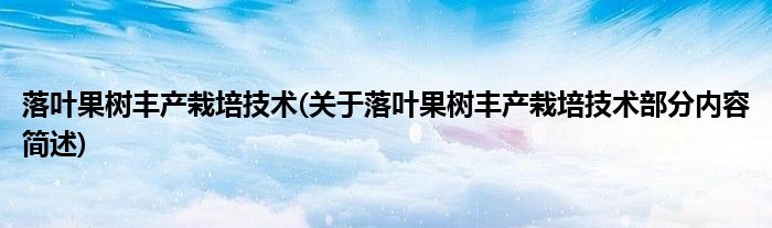 落叶果树丰产栽培技术(关于落叶果树丰产栽培技术部分内容简述)