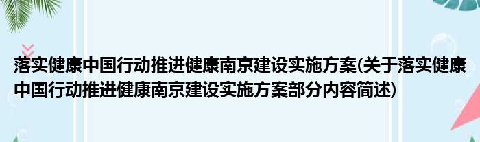 落实健康中国行动推进健康南京建设实施方案(关于落实健康中国行动推进健康南京建设实施方案部分内容简述)