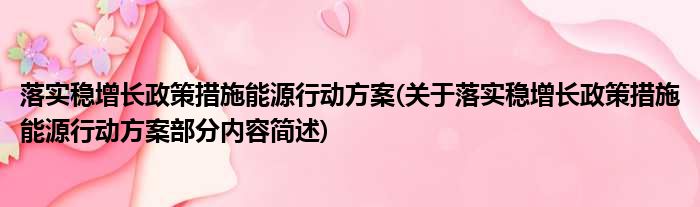 导读 大家好,今天小方来说说一篇关于落实稳增长政策措施能源行动方案,关于落实稳增长政策措施能源行动方案部分内容简述的文章,那么现在就为大