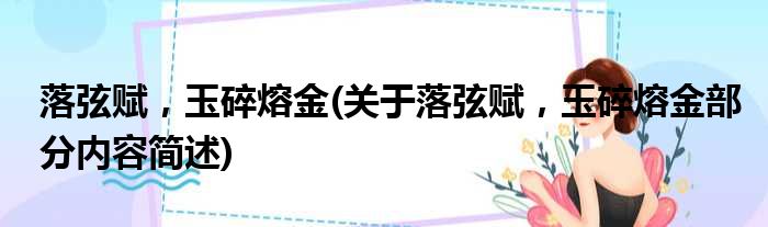 落弦赋,玉碎熔金(关于落弦赋,玉碎熔金部分内容简述)
