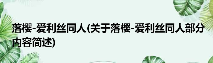 落樱-爱利丝同人(关于落樱-爱利丝同人部分内容简述)