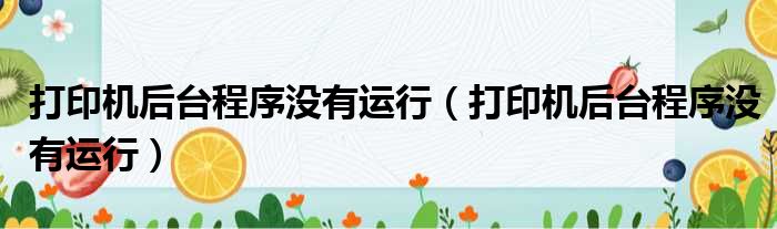 打印机后台程序没有运行(打印机后台程序没有运行)
