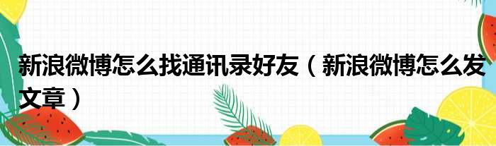 新浪微博怎么找通讯录好友(新浪微博怎么发文章)