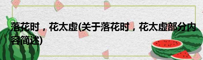 导读 大家好,今天小方来说说一篇关于落花时,花太虚,关于落花时,花太虚部分内容简述的文章,那么现在就为大家来简单介绍下,希望对各位小伙伴