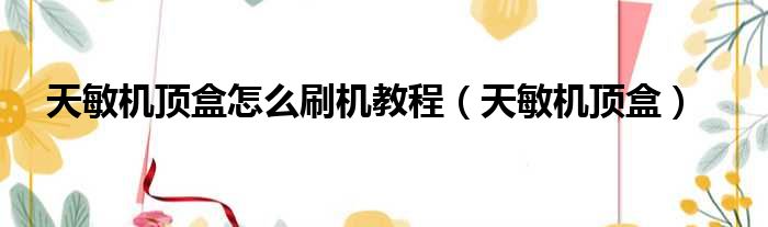 天敏机顶盒怎么刷机教程(天敏机顶盒)