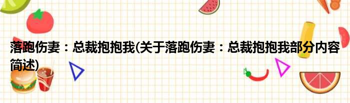 落跑伤妻:总裁抱抱我(关于落跑伤妻:总裁抱抱我部分内容简述)