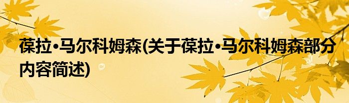 大家好,今天小方来说说一篇关于葆拉·马尔科姆森,关于葆拉·马尔科姆森部分内容简述的文章,那么现在就为大家来简单介绍下,希望对各位小伙伴们有所帮助。