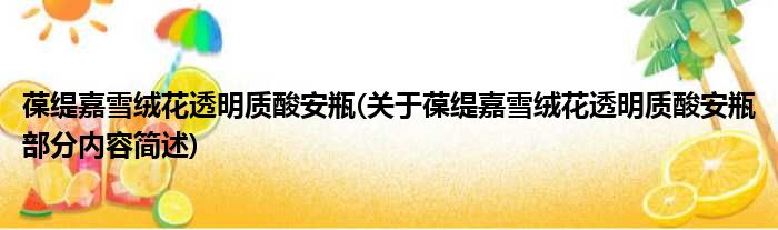 葆缇嘉雪绒花透明质酸安瓶(关于葆缇嘉雪绒花透明质酸安瓶部分内容简述)